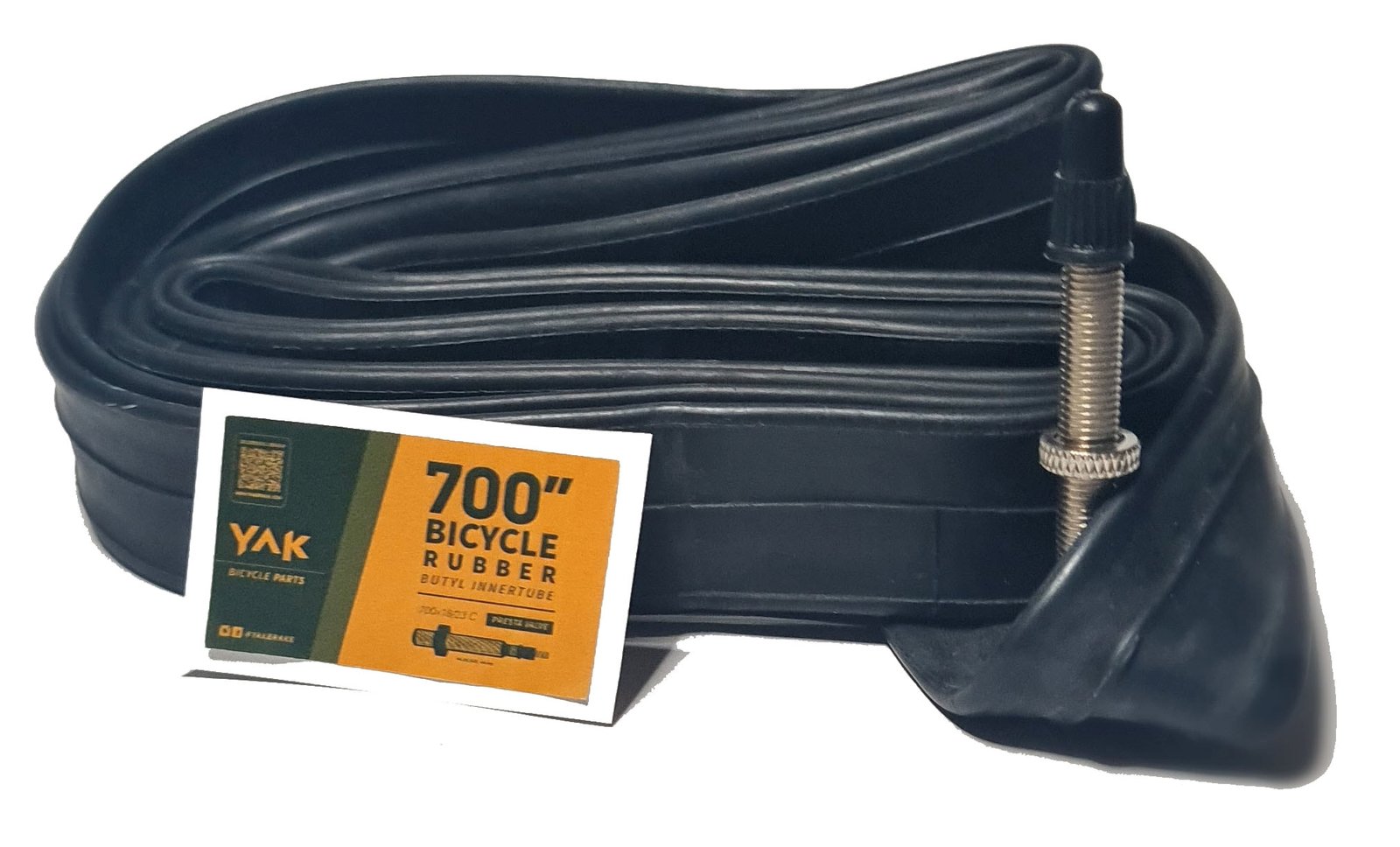 Cámara de aire para ruedas 700C con anchos entre 23 y 25 mm. Incorpora válvula fina Presta, adecuada para bicicletas de carretera y uso deportivo.